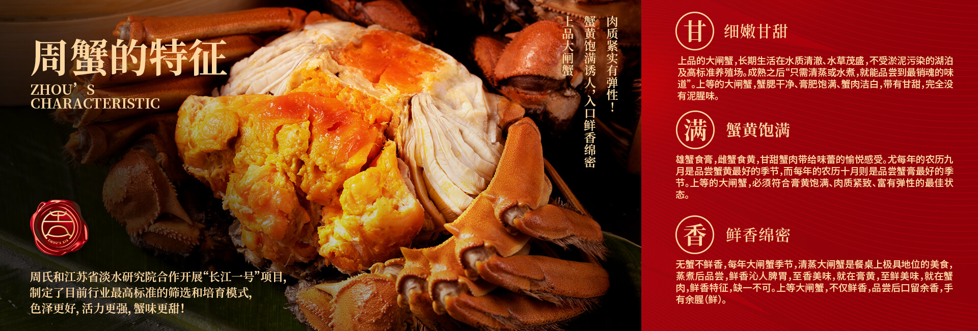 周氏水產(chǎn)精品大閘蟹,14年匠心沉淀,全國87家直營門店,100只大閘蟹只精選最優(yōu)50只。不虛標(biāo)規(guī)格,不玩???